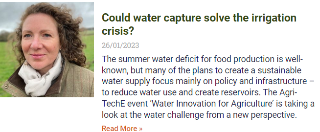 Speaker includes Prof Jerry Knox and Dr Rob Simmons of Cranfield University and companies such as Tailwater Systems, Wroot Water and Aguagrain.
